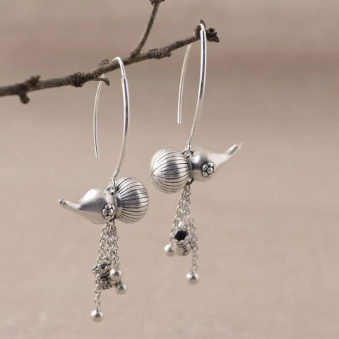 Gourd Earrings: Gourd earrings feature miniature gourd designs that dangle from earlobes. They come in a range of styles, from simple gourd-shaped studs to more elaborate and detailed designs.