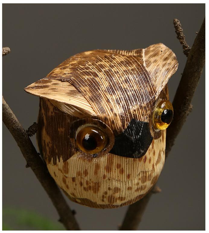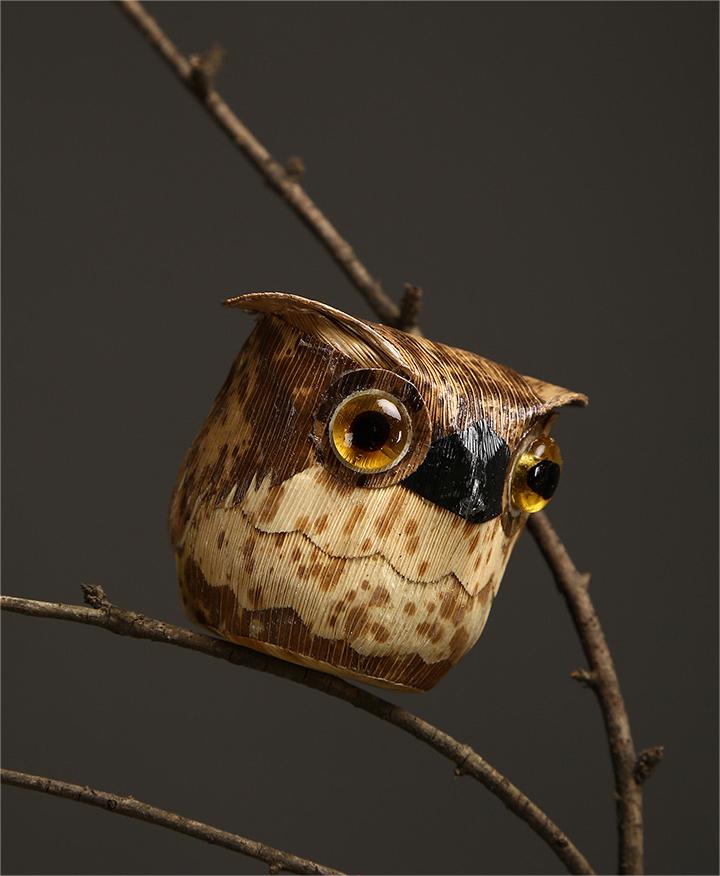 The combination of bamboo shoot shells and bamboo shoot skin results in a visually stunning and textured piece of art. The natural colors and patterns of the bamboo shoot materials add to the charm and authenticity of the craft. Each piece is meticulously crafted with attention to detail, capturing the essence and beauty of the owl.