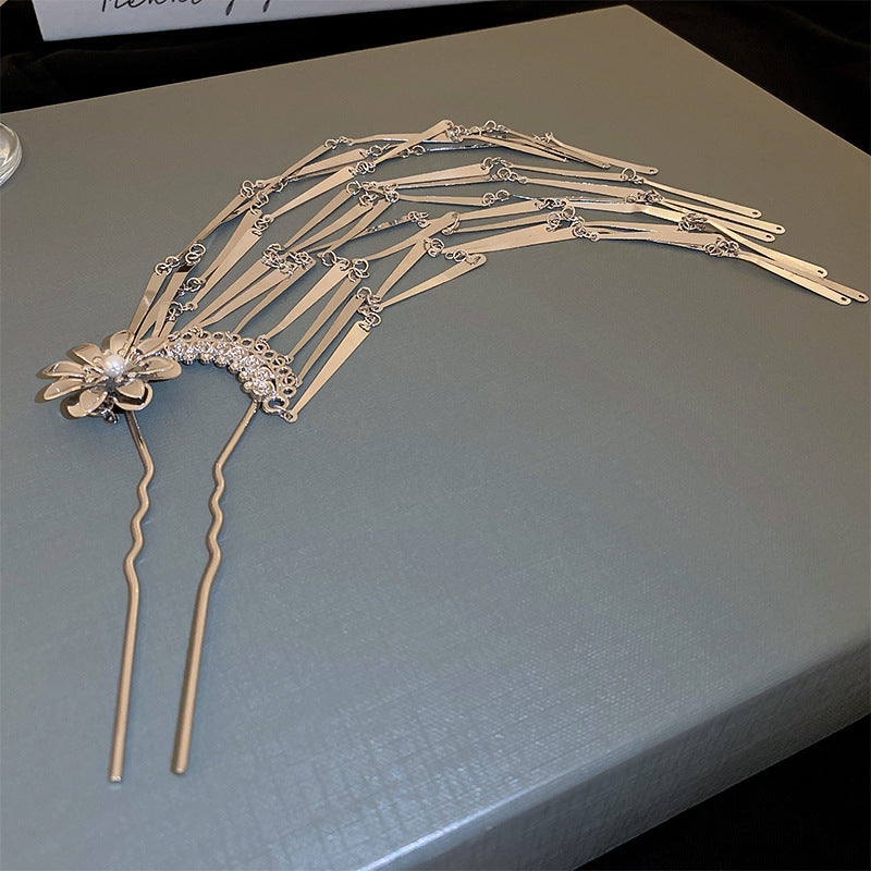 Flower Pearl Tassel Fork Hairpin