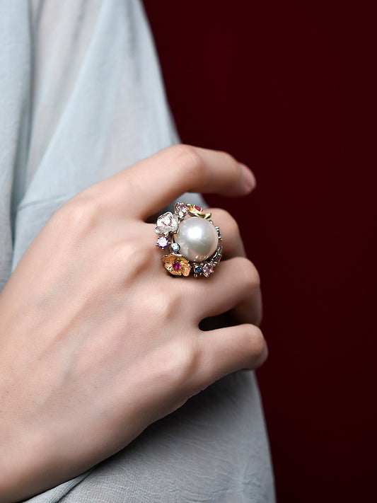 Ancient Koi Lotus Colored Oil Open Ring(Accumulate wealth)
