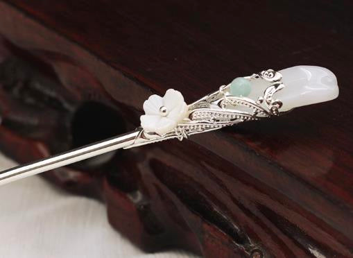 Magnolia Hotan Jade Tassel Hairpin - Sterling Silver