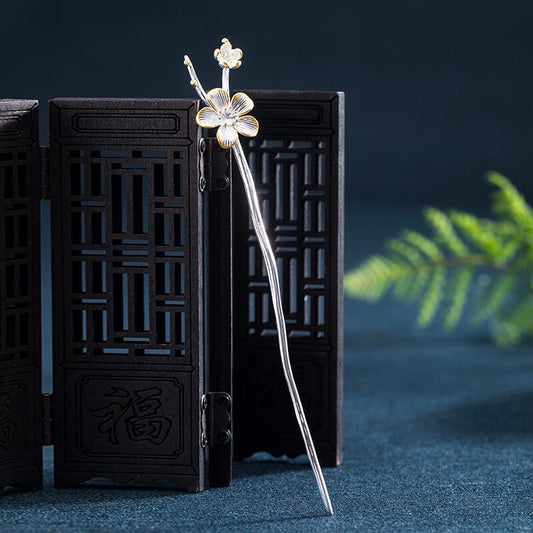 Plum Blossom Zircon Hairpin - Sterling Silver