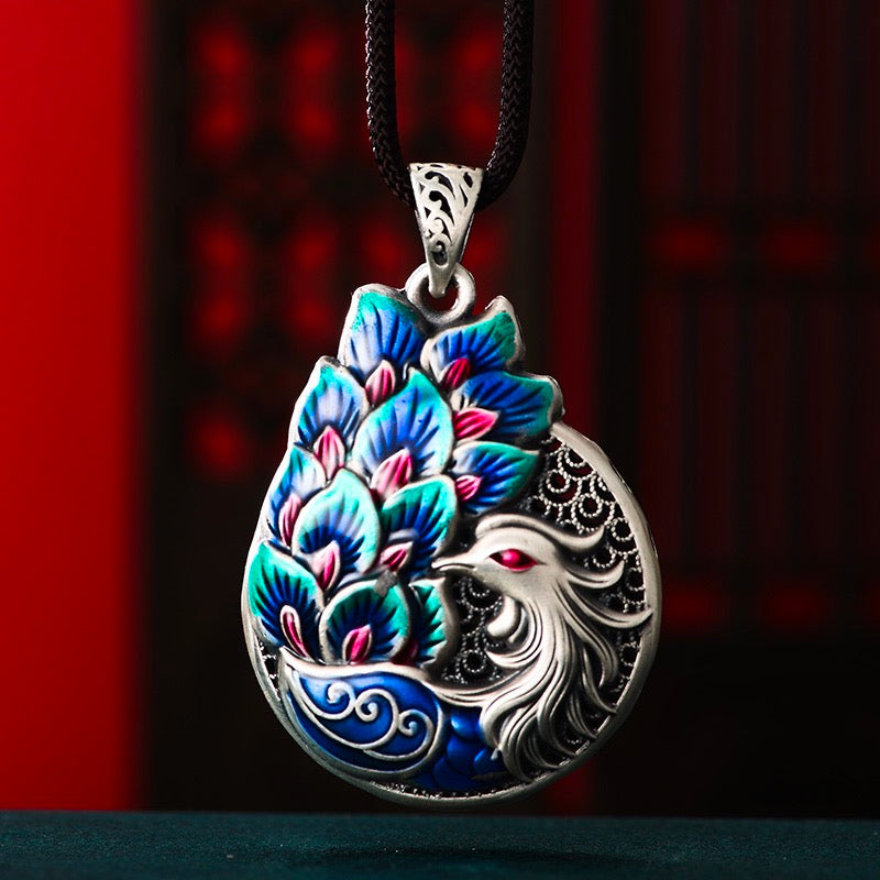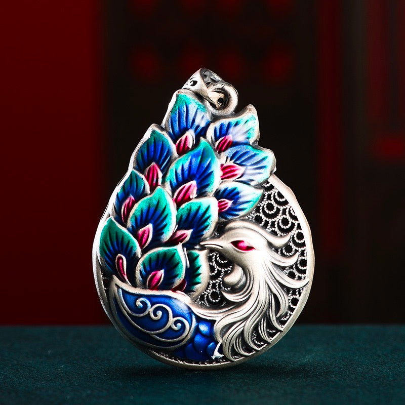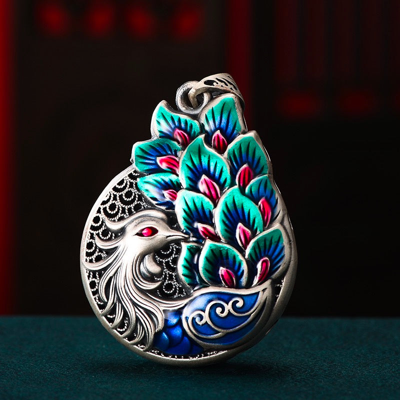 The peacock is often depicted in traditional Chinese art with its feathers spread out in a protective manner, a gesture meant to ward off evil spirits and protect the viewer from harm.
