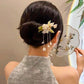 The Lily Hairpin possesses a unique aesthetic and symbolism. Firstly, the lily, as a beautiful flower, with its fresh and delicate appearance combined with the hairpin, adds an elegant and noble quality to the wearer. Secondly, the Lily Hairpin symbolizes qualities such as happiness, loyalty, and gratitude, making it an emotionally rich accessory.