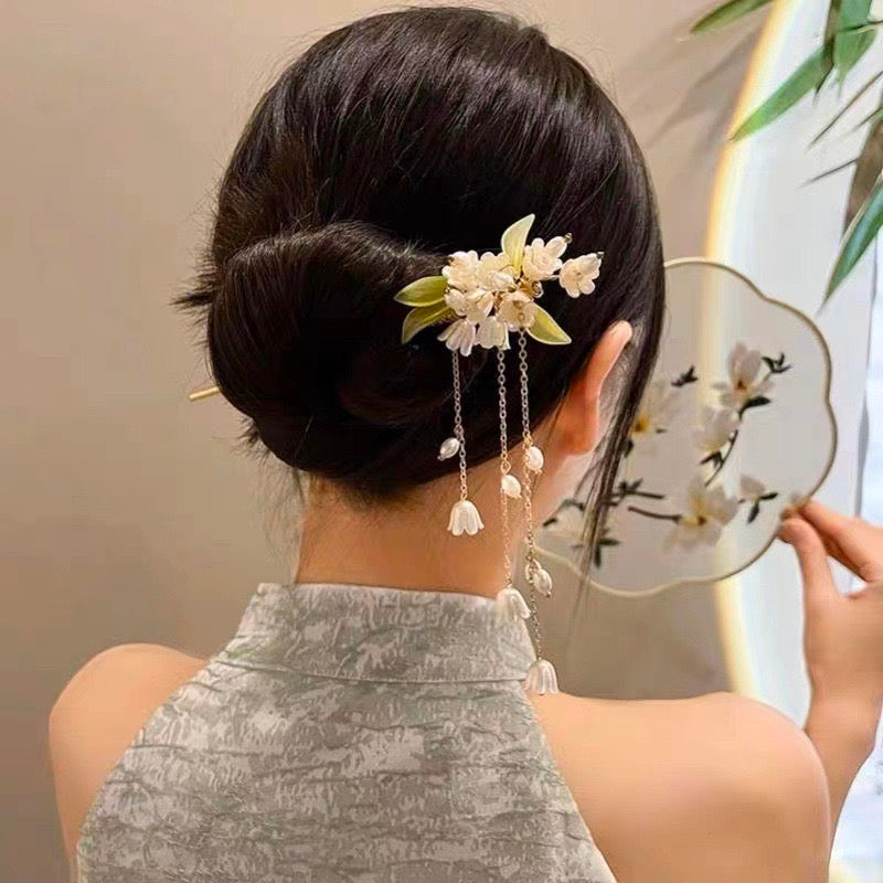 The Lily Hairpin is an accessory that combines lilies with a hairpin. This type of hairpin is typically designed with lilies as its main element and crafted with intricate workmanship.