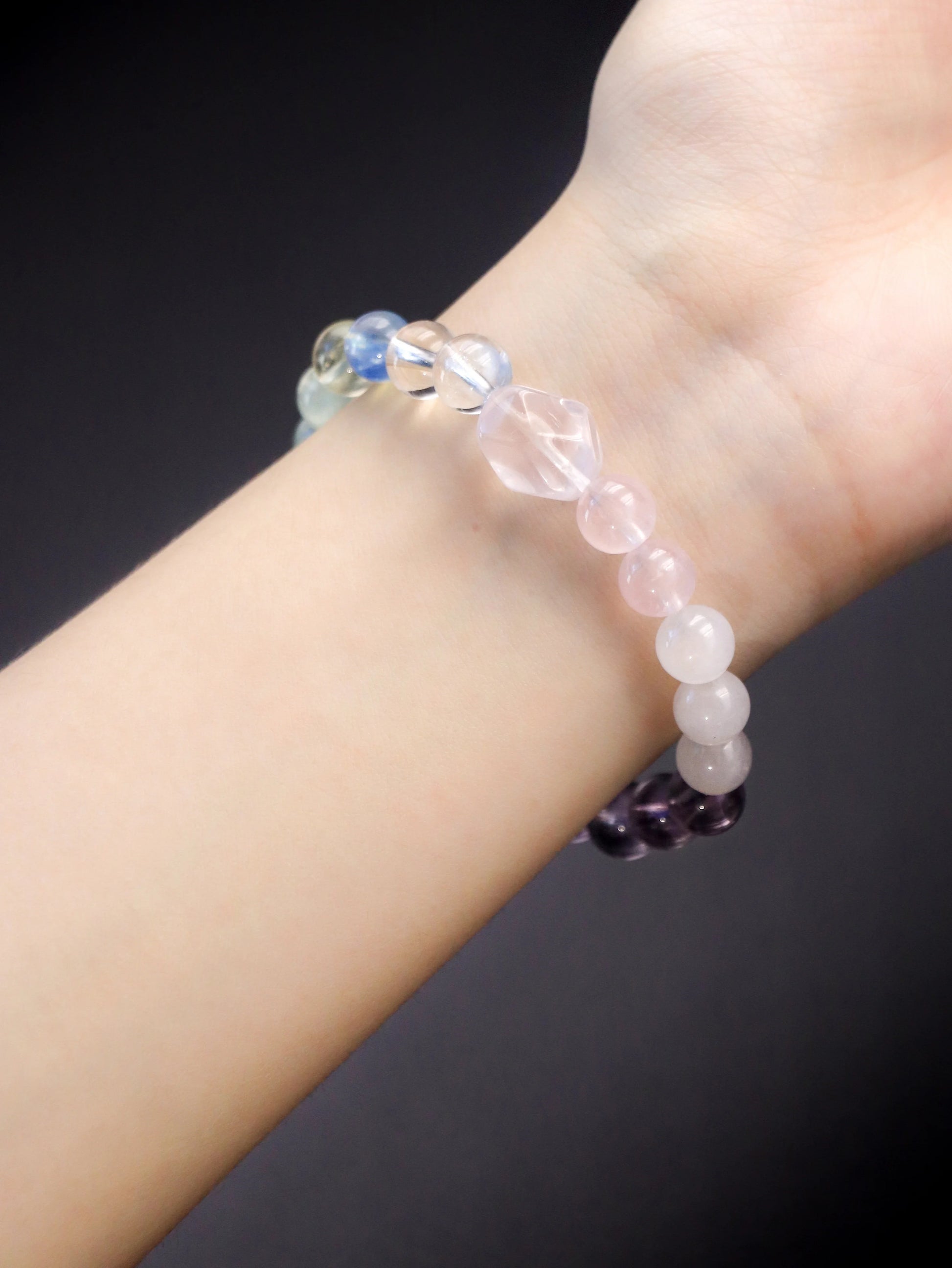 Each bead is carefully selected from high-quality quartz crystals—naturally tinted by trace elements like iron, manganese, or titanium—resulting in stunning pastel and candy-like hues. From soft pinks to serene purples and cheerful yellows, every color supports a different aspect of energy healing:
