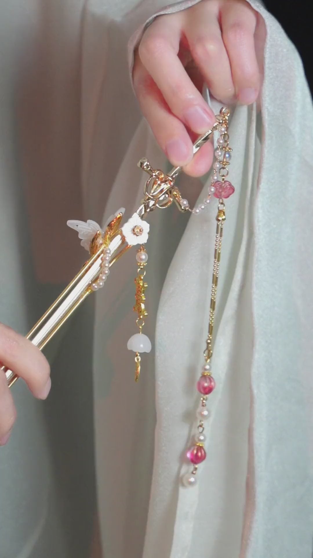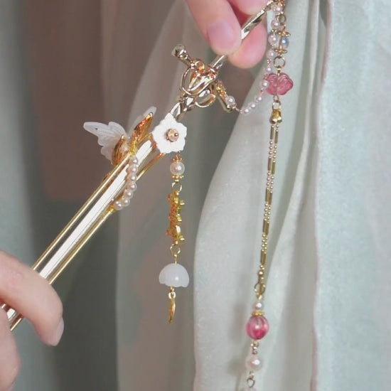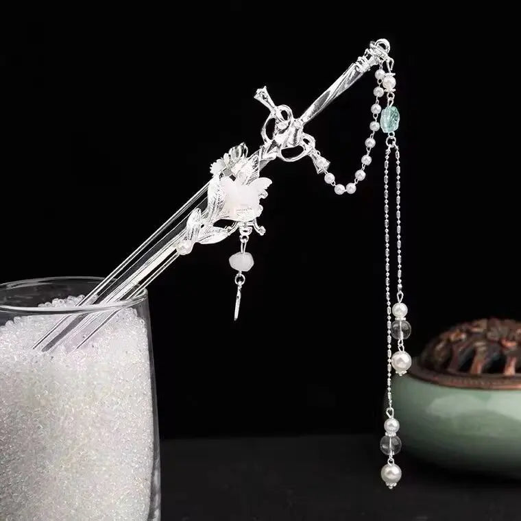 Magnolia Hotan Jade Tassel Hairpin - Sterling Silver