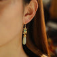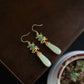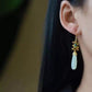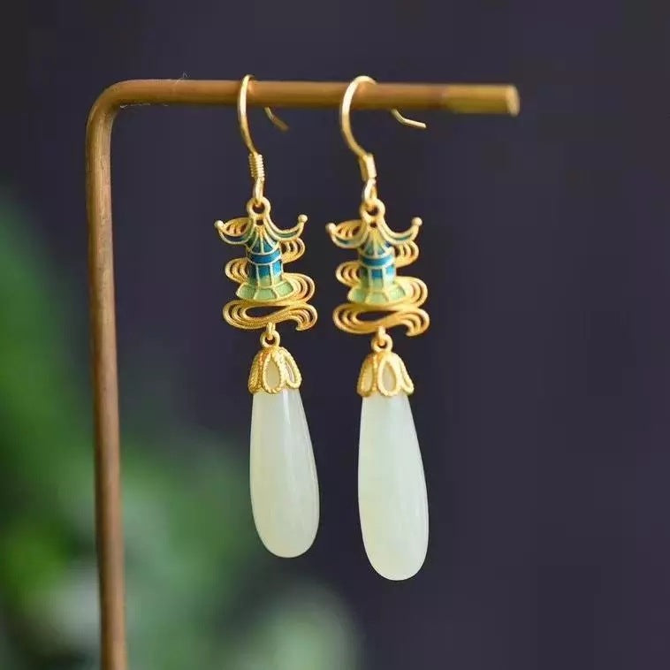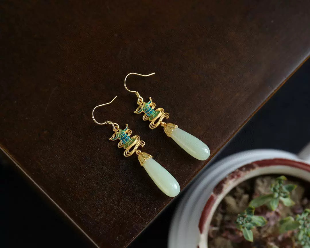 Penglai Pavilion Hetian Jade Water Drop Enamel Earrings - Sterling Silver