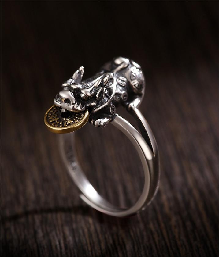 A Pixiu Bite Copper Coin Ring is a type of ring that incorporates the imagery of a Pixiu creature and a copper coin. Here's a breakdown of the different elements: