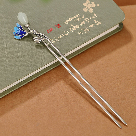 Jade symbolizes noble character in Chinese culture, as the saying goes, 'A gentleman's virtue is in jade.'. Men giving jade hairpins not only express admiration, but also imply praise for women's character. The white jade hairpin symbolizes purity, the emerald hairpin represents preciousness and uniqueness, and the Hetian hairpin symbolizes that love is stronger than gold.