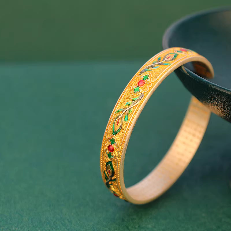 Inspired by classical oriental aesthetics and royal phoenix imagery, this bangle is designed to balance visual elegance with spiritual depth. The solid silver body provides a sense of weight and presence, while the colorful enamel phoenix feathers add refined artistic expression.
