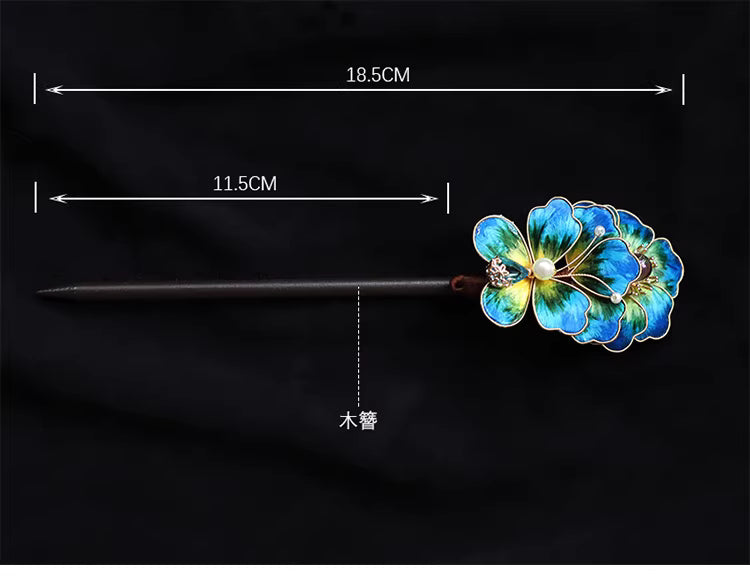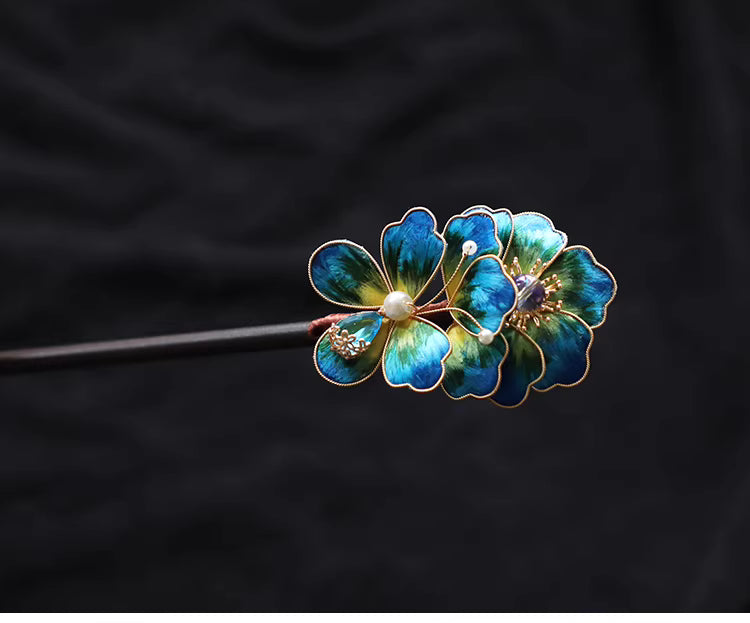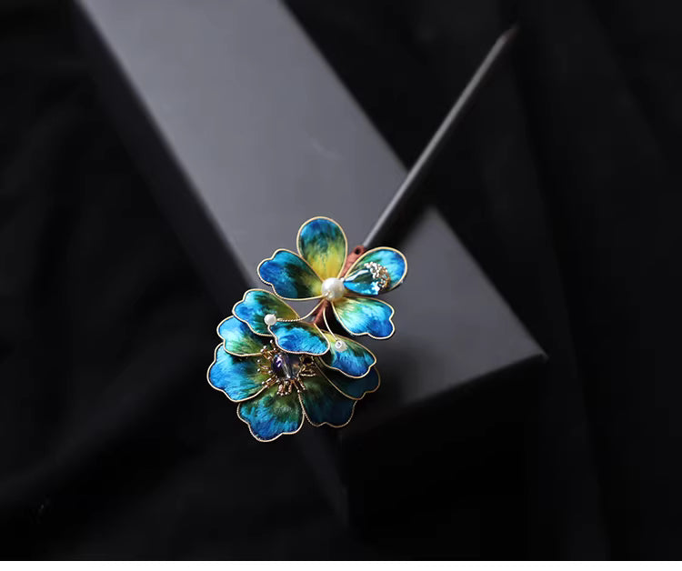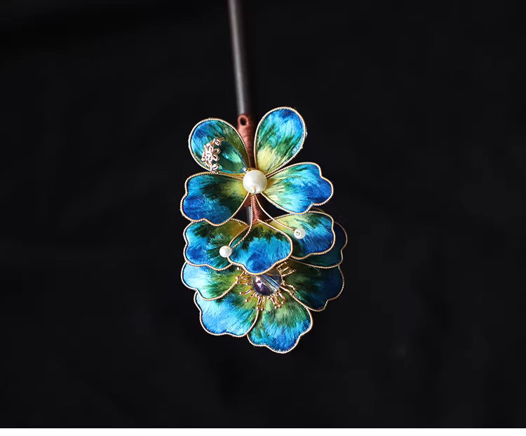 In Chinese culture, floral hair ornaments symbolize elegance, femininity, and auspicious beauty. The peacock blue tone represents nobility, wisdom, and refined charm, making this hairpin a meaningful accessory for both personal wear and gifting.