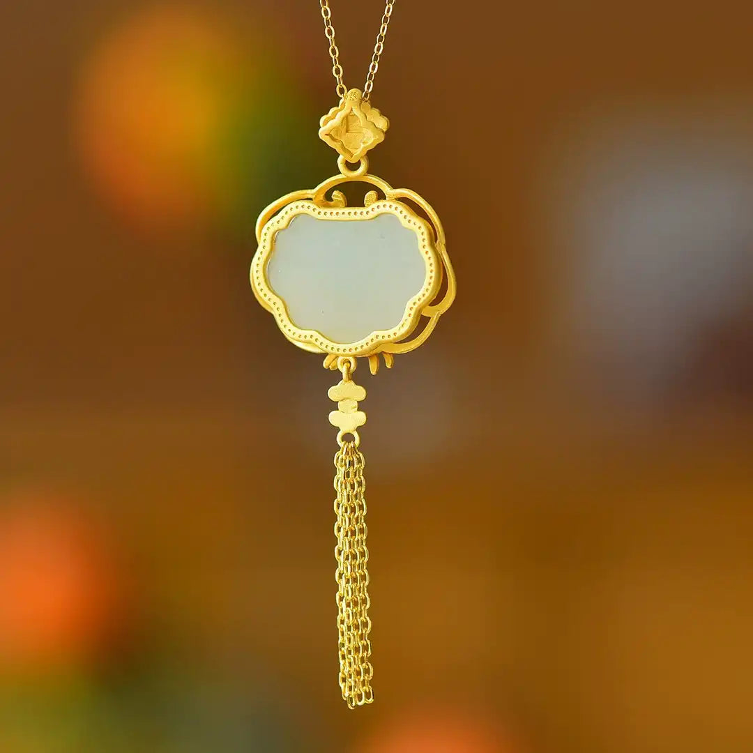 Inspired by traditional Chinese auspicious symbolism, this handcrafted S925 sterling silver cloisonné magpie pendant is delicately inlaid with natural Hetian jade. Finished in a warm golden tone, it blends classical palace aesthetics with modern Guochao elegance, making it a refined statement accessory for women.