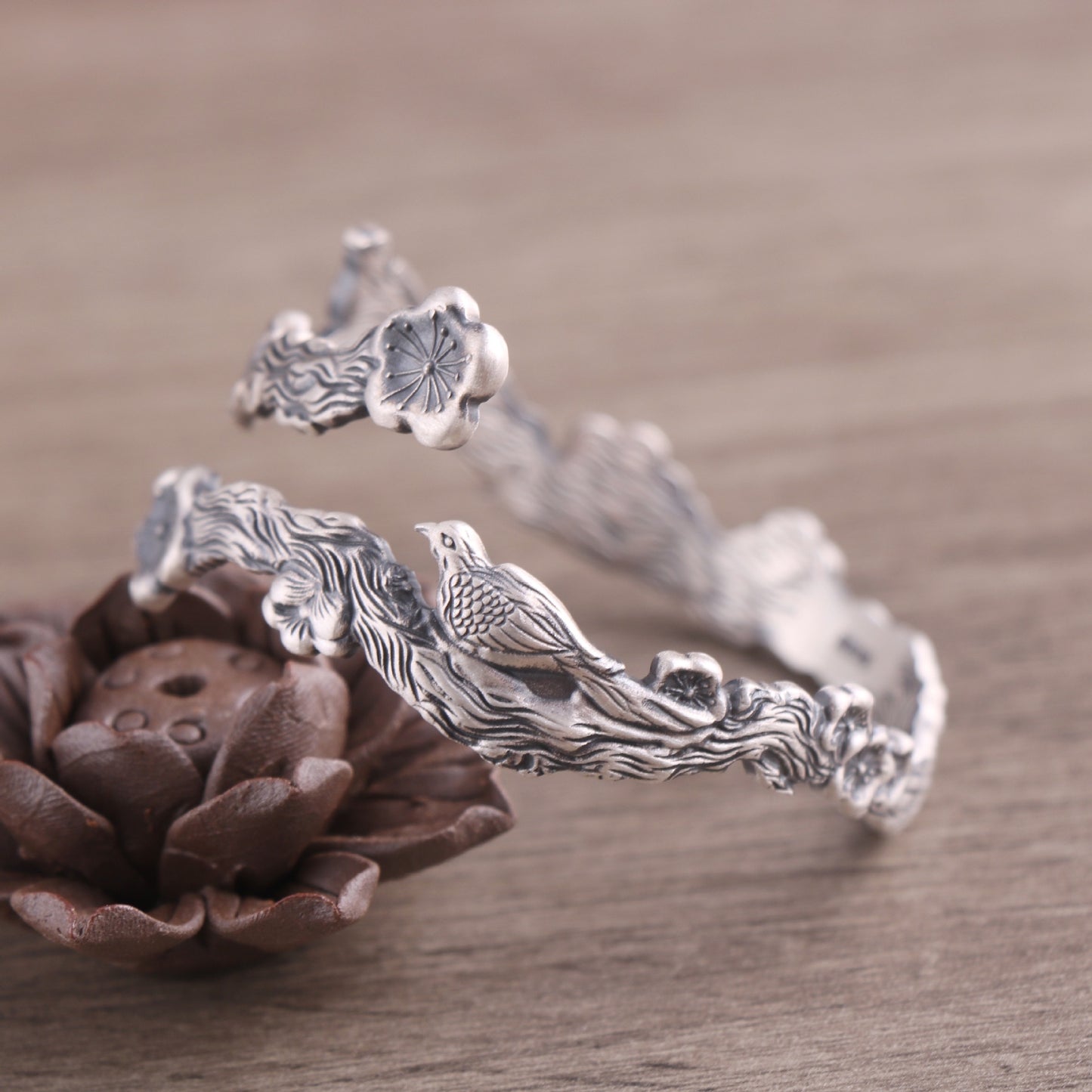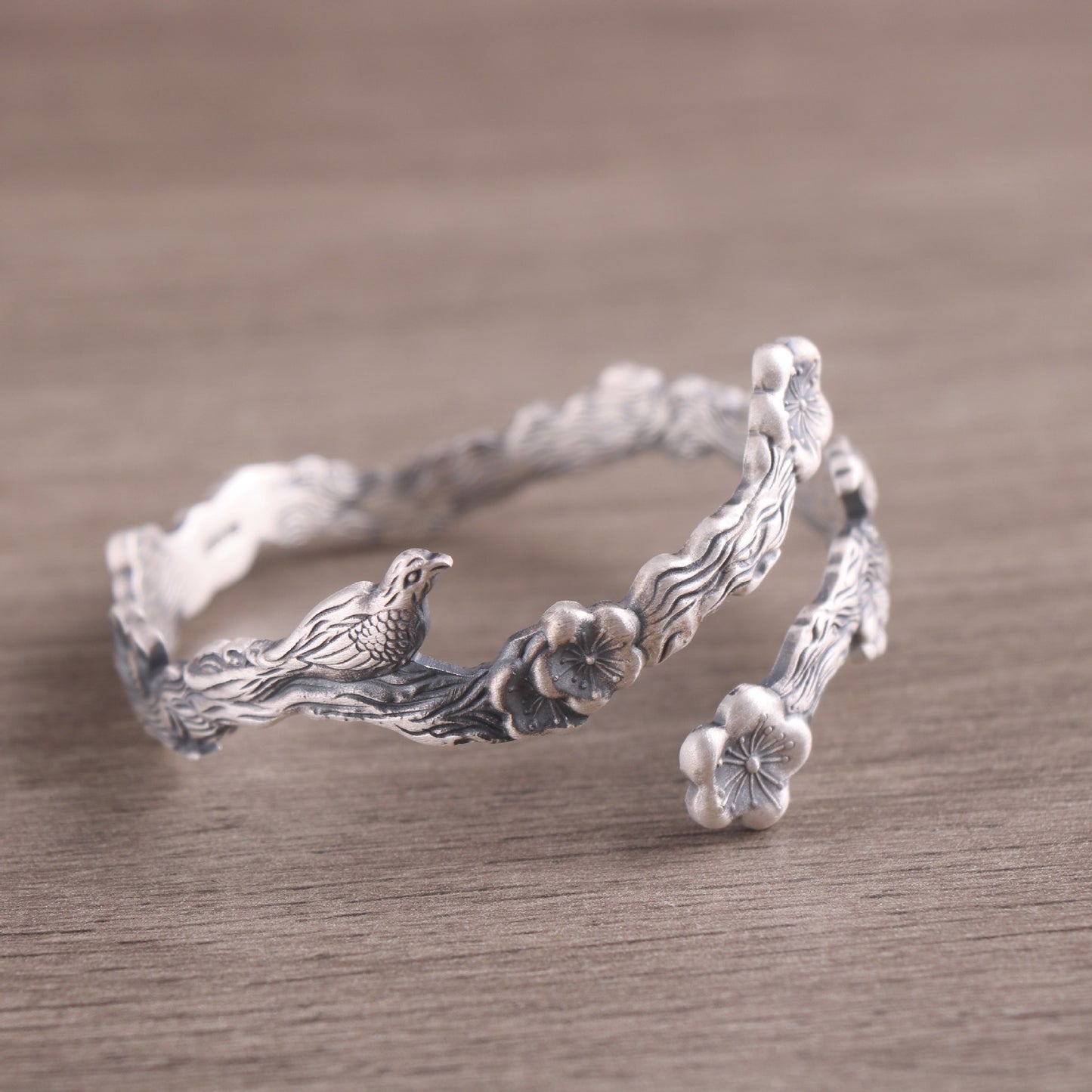 Magpie Plum Blossom Ethnic Bracelet-Sterling Silver